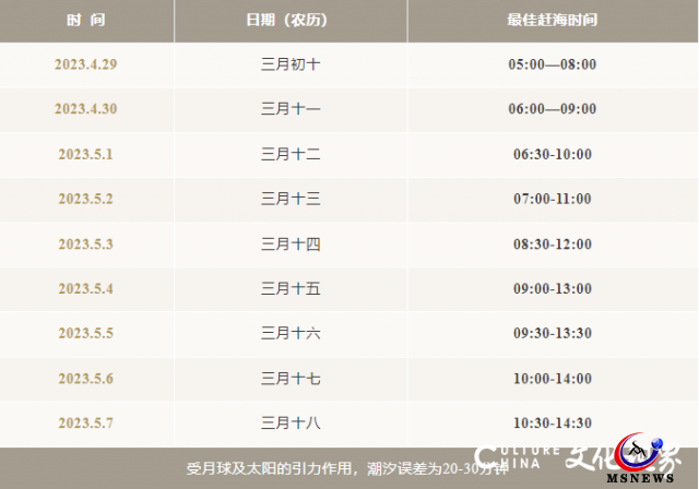 趕海時間表: